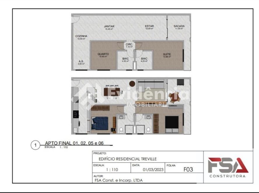 Acabamento em porcelanato e laminado.