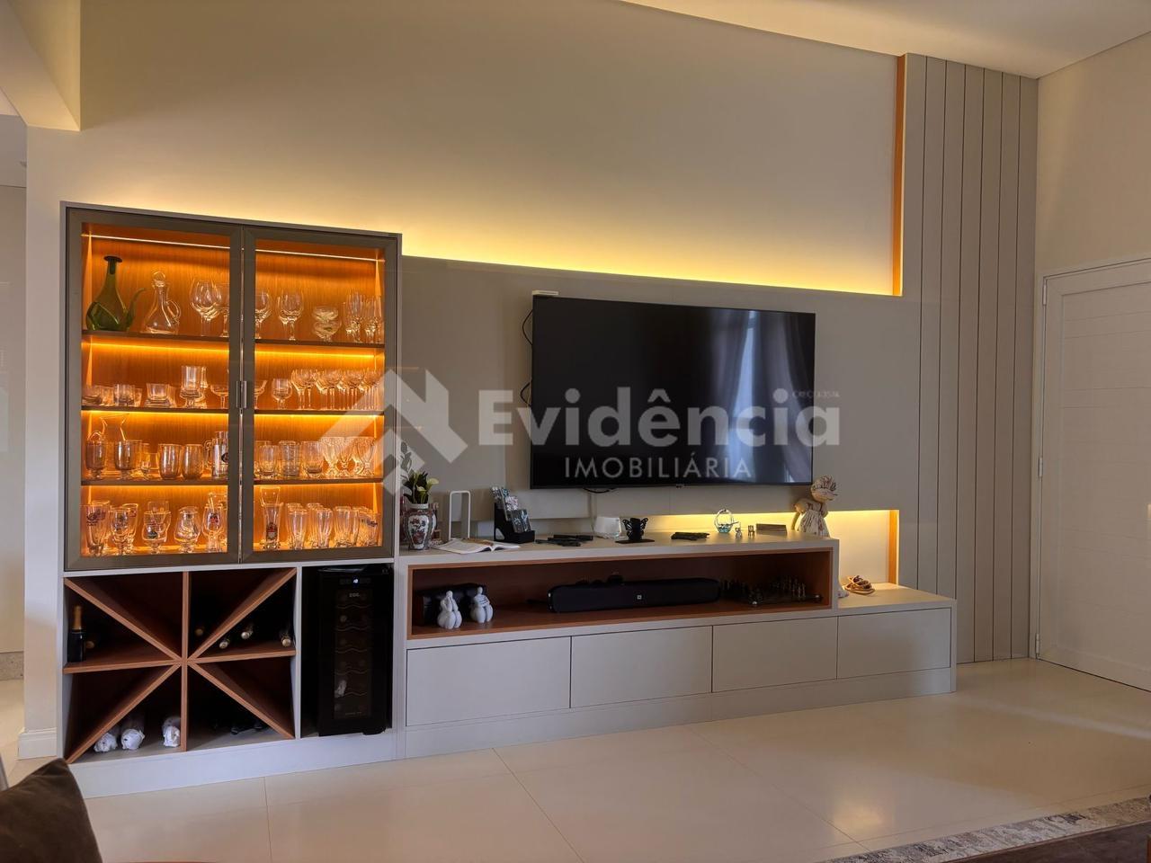 SALA DE ESTAR COM PAINEL DE TV E CRISTALEIRA;
