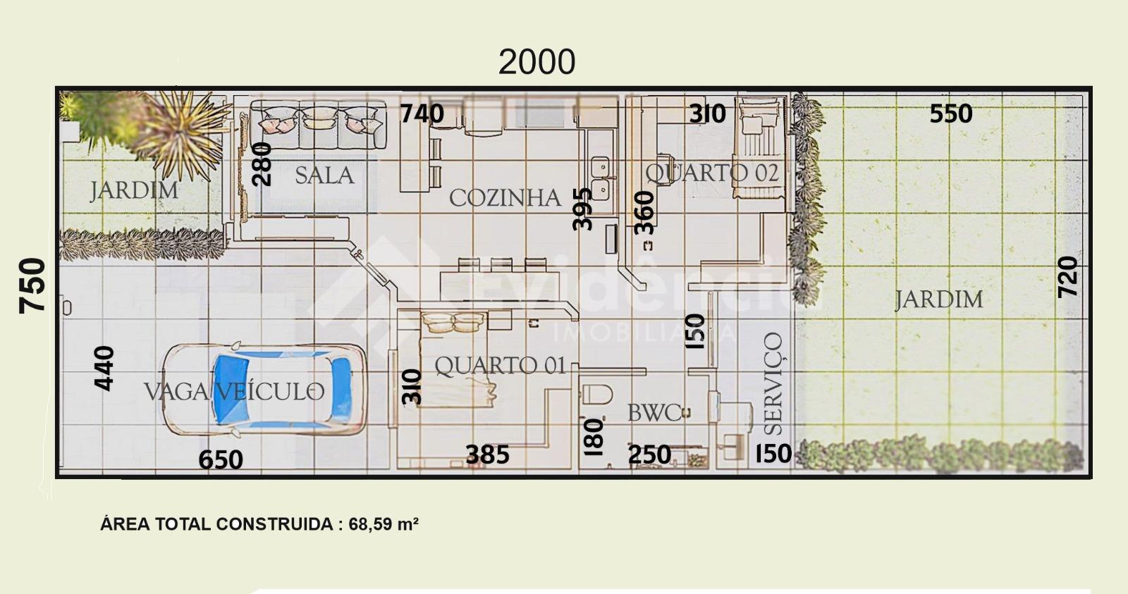 SÃO APROXIMADAMENTE 70M² DE CONSTRUÇÃO, CONTENDO: