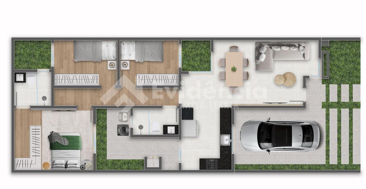 CASA NOVINHA EM FASE DE ACABAMENTO Sala Cozinha Banheiro social 3 quartos (1 suite) Churrasqueira Quartos com garden Infraestrutura em todos os cômodos para ar condicionado (inclusive será entregue com um instalado) São 126 m2 de terreno e 84 de construção