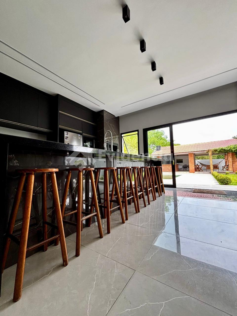 Área gourmet integrada com sala de estar em conceito aberto