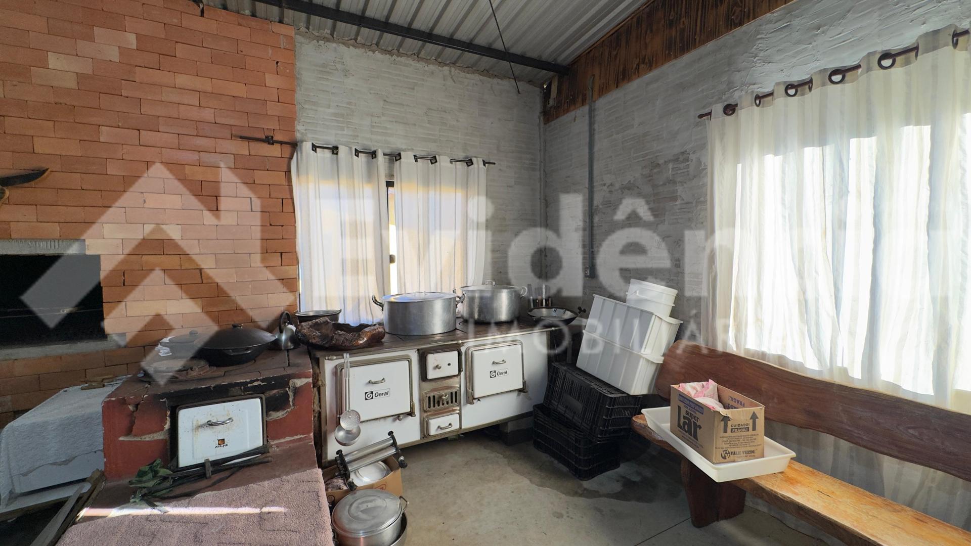 Área gourmet com fogão a lenha